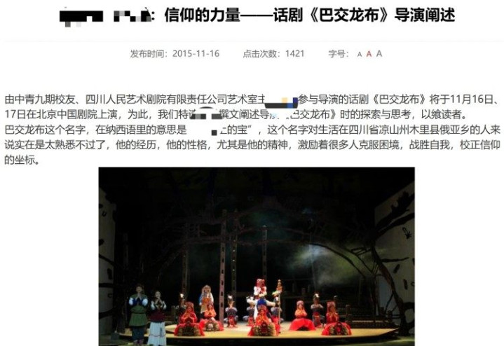 话剧《巴交龙布》于2015年5月在成都首演,是中国首部反应“普惠金融”题材的话剧,敷陈凉山州木里县信用社职工巴交龙布为全乡930多户东谈主家提供金融办事的故事。