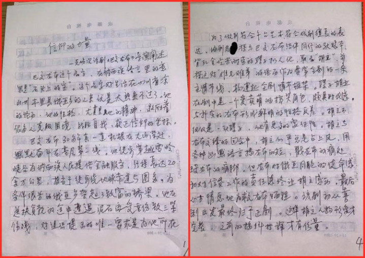 查丽芳称,2015年3月她完成了导演进展创作,并向剧组成员进行进展。甄某仅为挂名导演,未现实参与责任,却在未经授权情况下发表与其手写作高度一致的文章,骚扰其签字权、发表权等。她提供两份手写作算作左证:第一份《信仰的力量——无场次话剧<巴交龙布>导演进展》手写作题名时分为2015年3月,共7页;第二份《导演进展》题名时分为2015年3月31日,共11页。其中,第一份手写作与甄某发表文章高度不异。