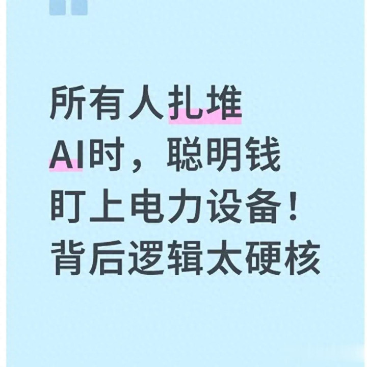 2025年四季度的A股市集里,AI板块被散户扎堆炒作,热门标的换手率动辄超20%,但北上资金、社保基金这类“智慧钱”却暗暗调转标的——三季度增握电力开采板块的范围超200亿元,部分龙头企业的北向握股比例从5%飙升至8%,社保基金也在十大畅达鼓吹里新增了6家电力开采公司。许多东谈主看不懂:AI是当下最火的风口,为啥智慧钱反而盯上了看似传统的电力开采?其实谜底很直白:AI的爆发离不开电力支握,而电力开采的升级是AI和新式电力系统的“刚需”,这门贸易的敬佩性,远比纯见地的AI炒作高得多。今天就用大口语扒明晰智慧钱抢筹电力开采的中枢逻辑,帮你看懂这背后的投资契机。